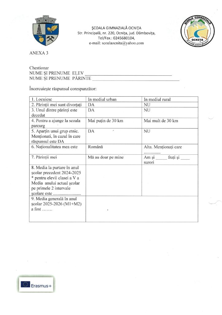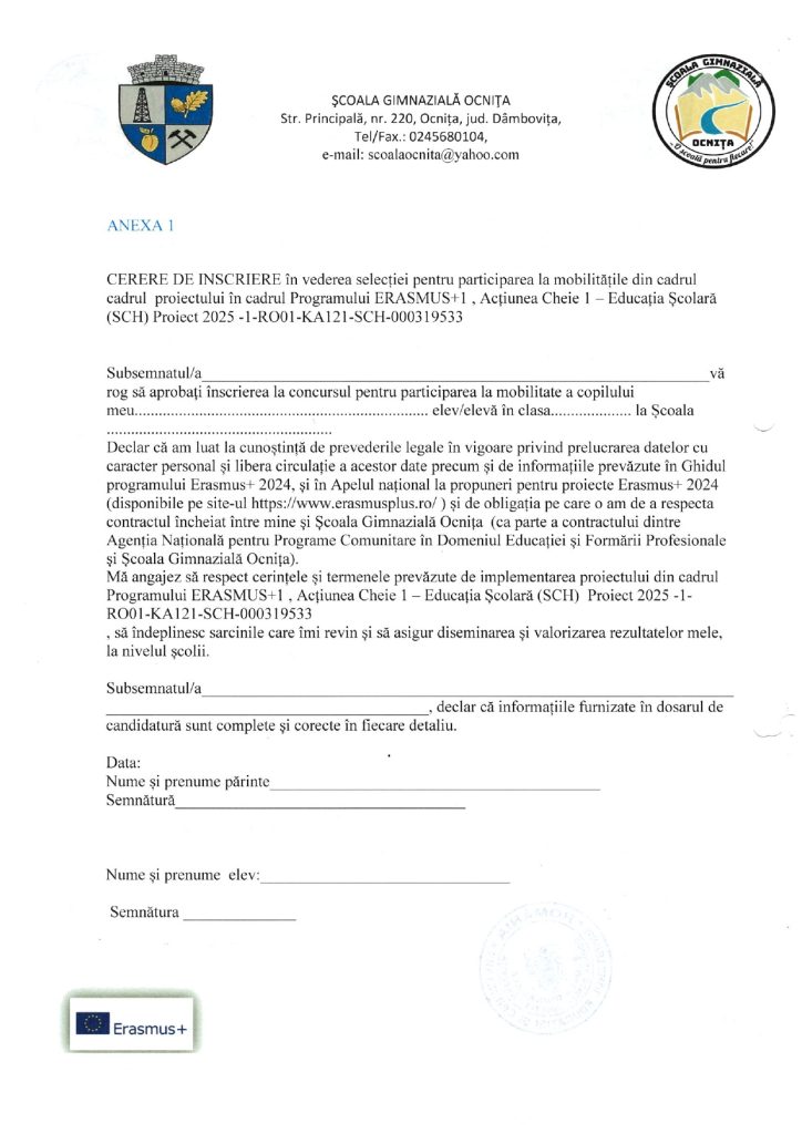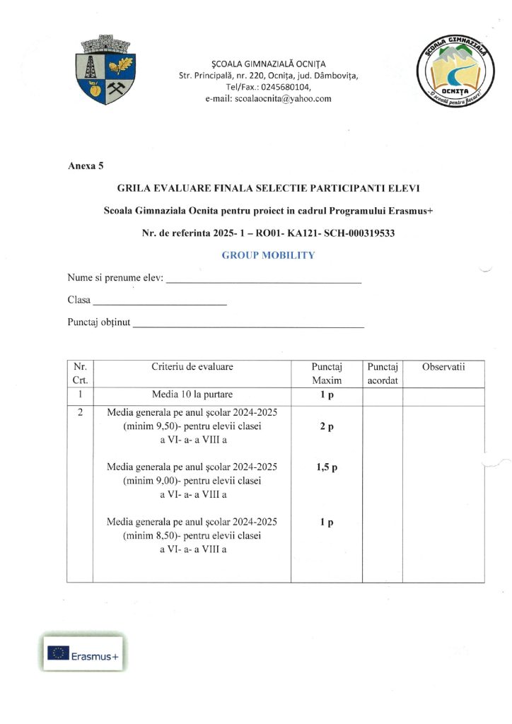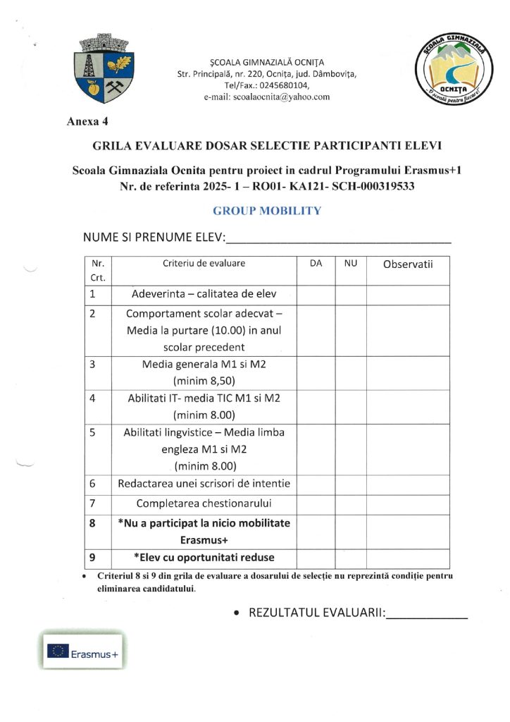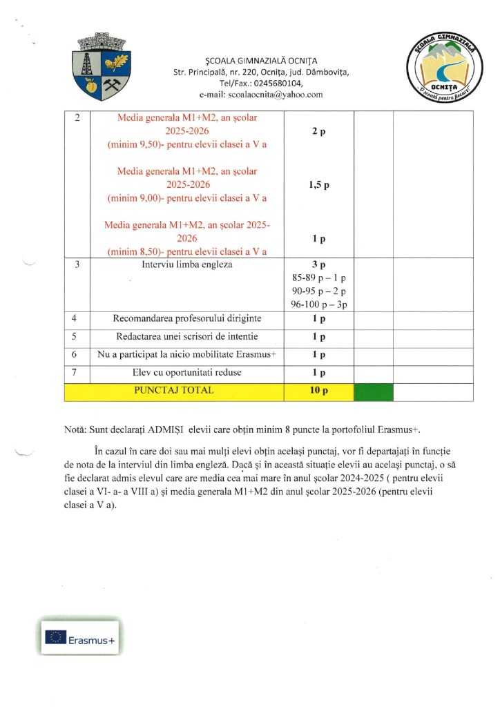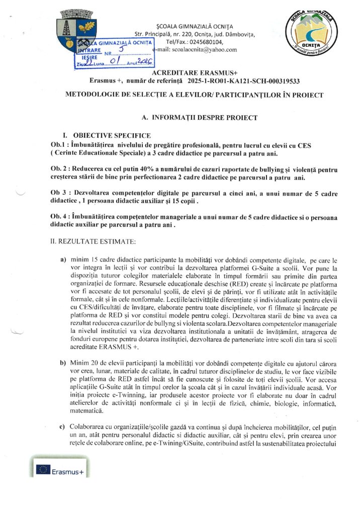 METODOLOGIE DE SELECȚIE A ELEVILOR ERASMUS+ 2025-2026